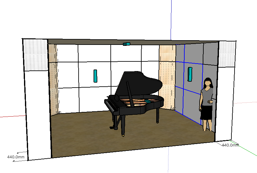 - 高価格のピアノは、24時間弾けるように防音室の導入と。壁にロバーネをつける。